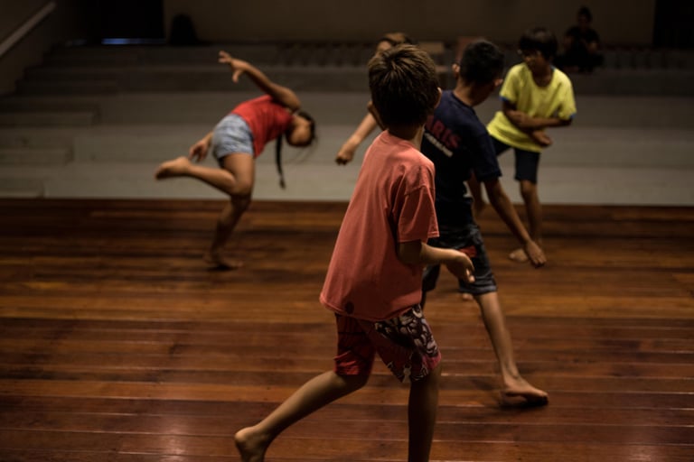 Durant ce temps et sous forme d'ateliers de danse contemporaine et de création chorégraphique, les élèves ont été accompagnés dans la création d'une pièce mêlant danse contemporaine et danse marquisienne.