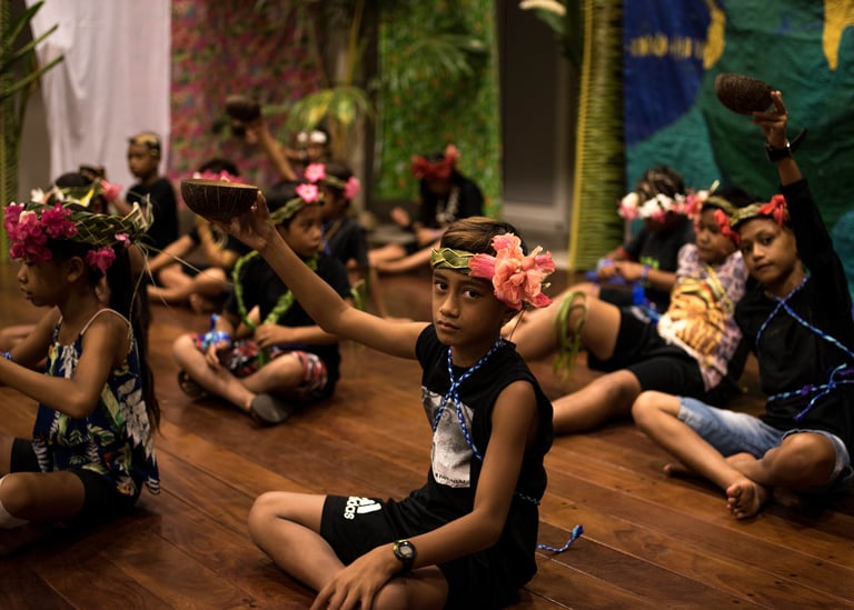 Lors de sa résidence d'écriture de deux mois en Polynésie française pour sa nouvelle création L'Heure Fauve, Circé Poyet a mené une série d'ateliers au CSP Hakahau, école primaire de Ua Pou, aux Îles Marquises.